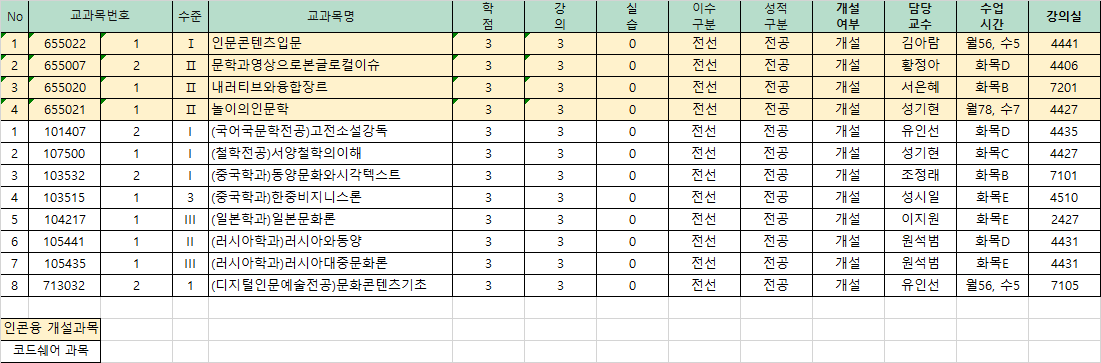 2025학년도 1학기 인문콘텐츠융합전공 개설 및 코드쉐어 교과목 관련으로 안내드리오니