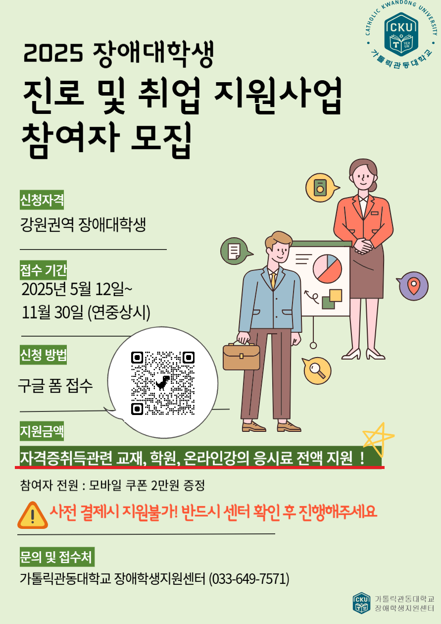 - 가톨릭관동대학교 장애학생지원센터 T. 033-649-7571