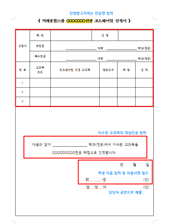 [양식] 타과교과목 인정원 신청서 작성 방법